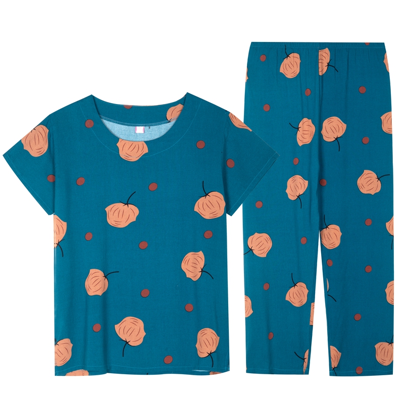 中老年睡衣女夏季宽松绵绸短袖家居服人造棉两件套妈妈棉绸套装薄