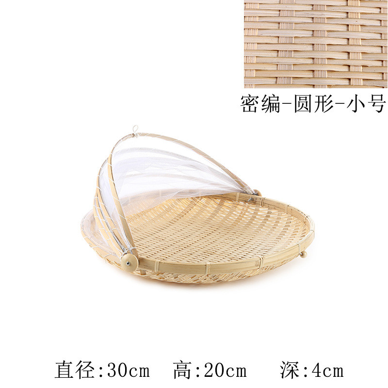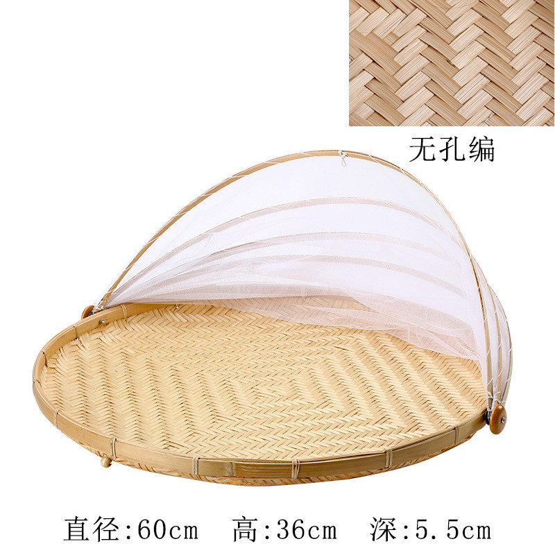 手工纱罩带竹制晒篮竹制收纳筐圆簸箕面包馒头筐农家晾晒带盖篮子