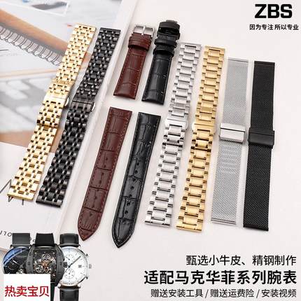 适用原装马克华菲真皮手表带男士精钢米兰网带DW罗西尼天梭不锈钢