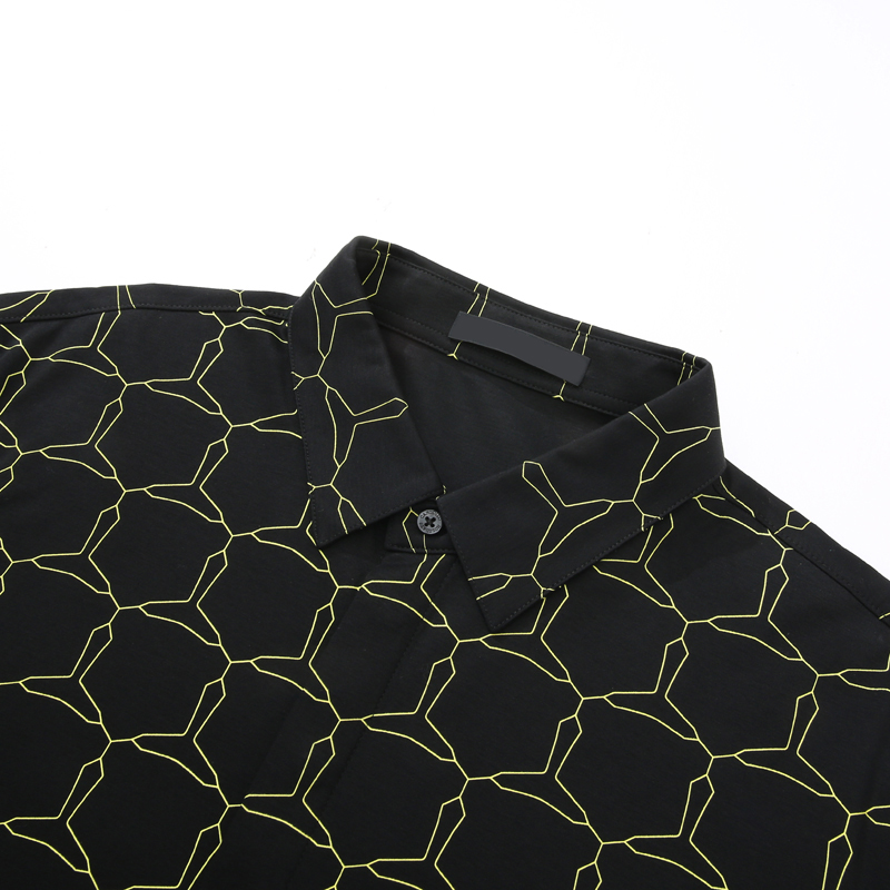CA356 卡换季断码清仓男士商务休闲全棉黑色印花翻领长袖针织衬衫