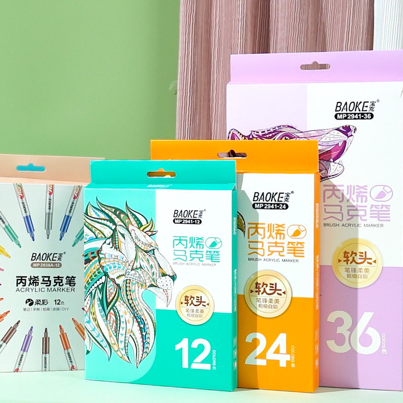 宝克软头丙烯马克笔12色24色36色