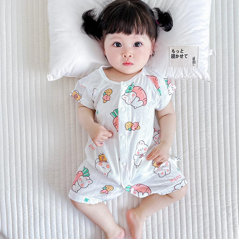 婴儿连体衣夏季薄款短袖新生宝宝衣服夏装睡衣婴儿服超萌哈衣爬服