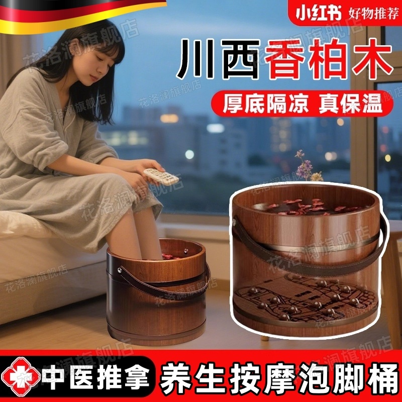 泡脚桶木桶家用中医养生专用新款过小腿加厚深保温熏蒸足浴洗脚盆