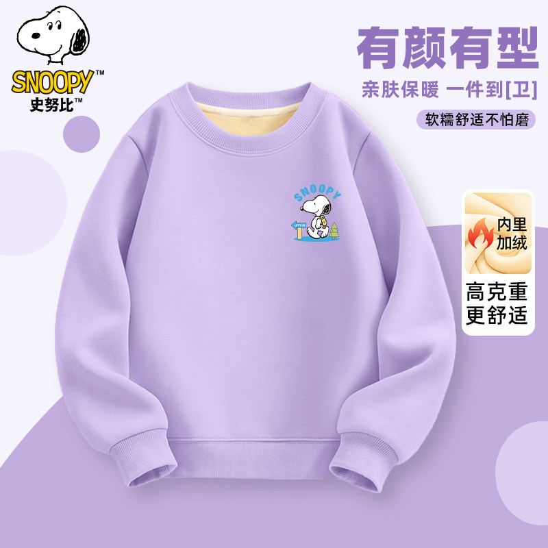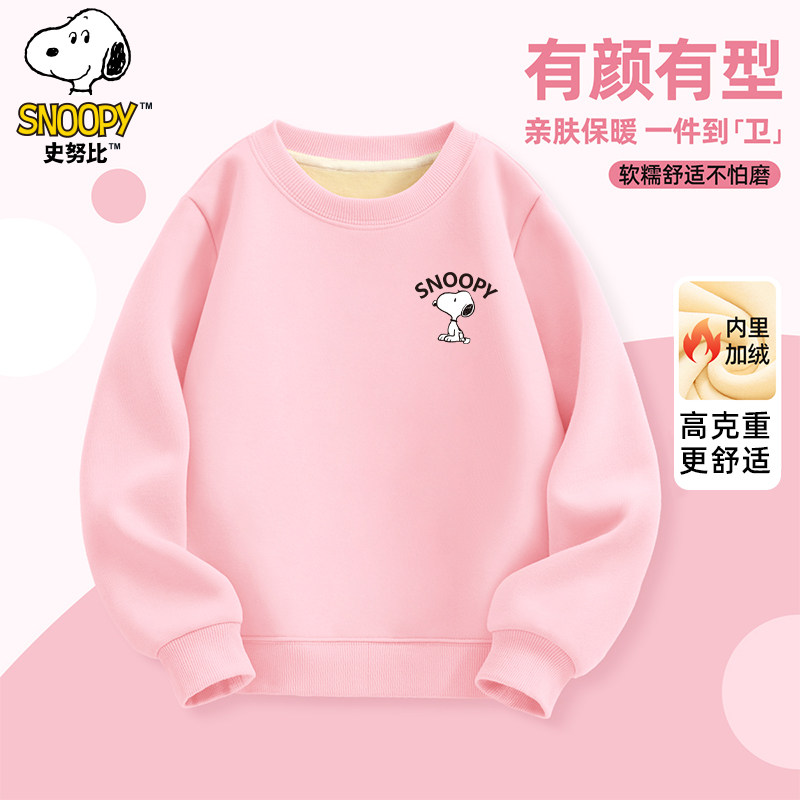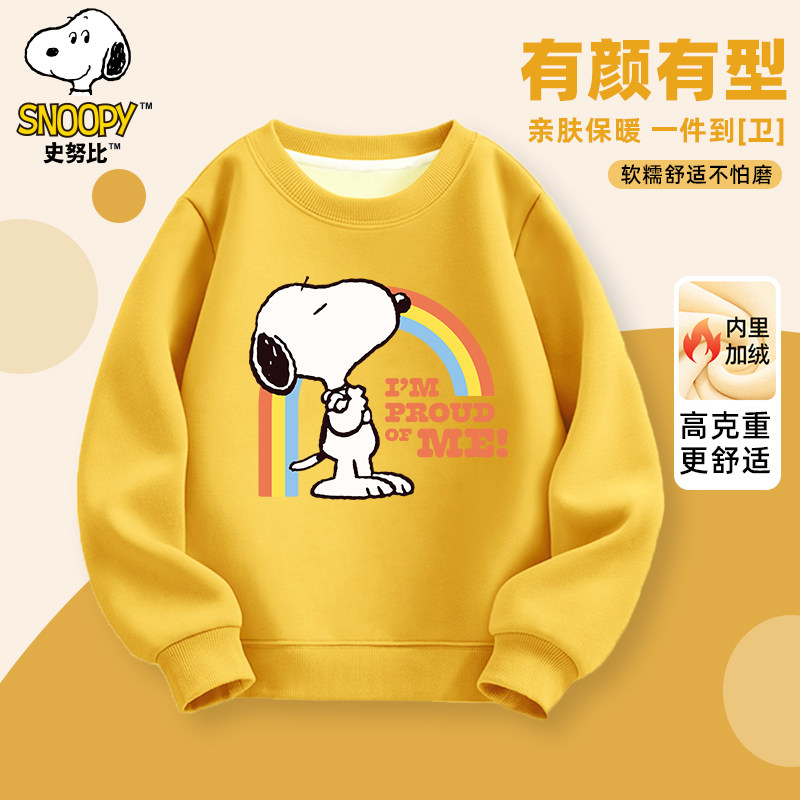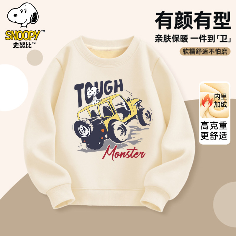 史努比童装男童卫衣加绒加厚款男大童冬季保暖上衣圆领儿童冬装潮