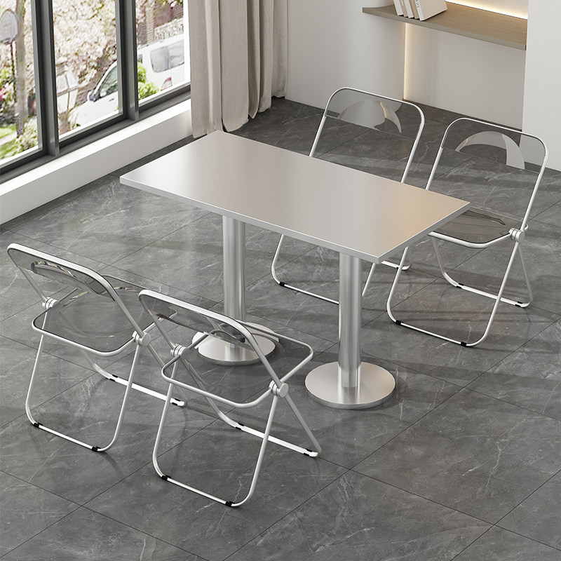 不锈钢摺叠桌子快餐小吃店食堂工厂奶茶店工业风长方形餐桌椅组合