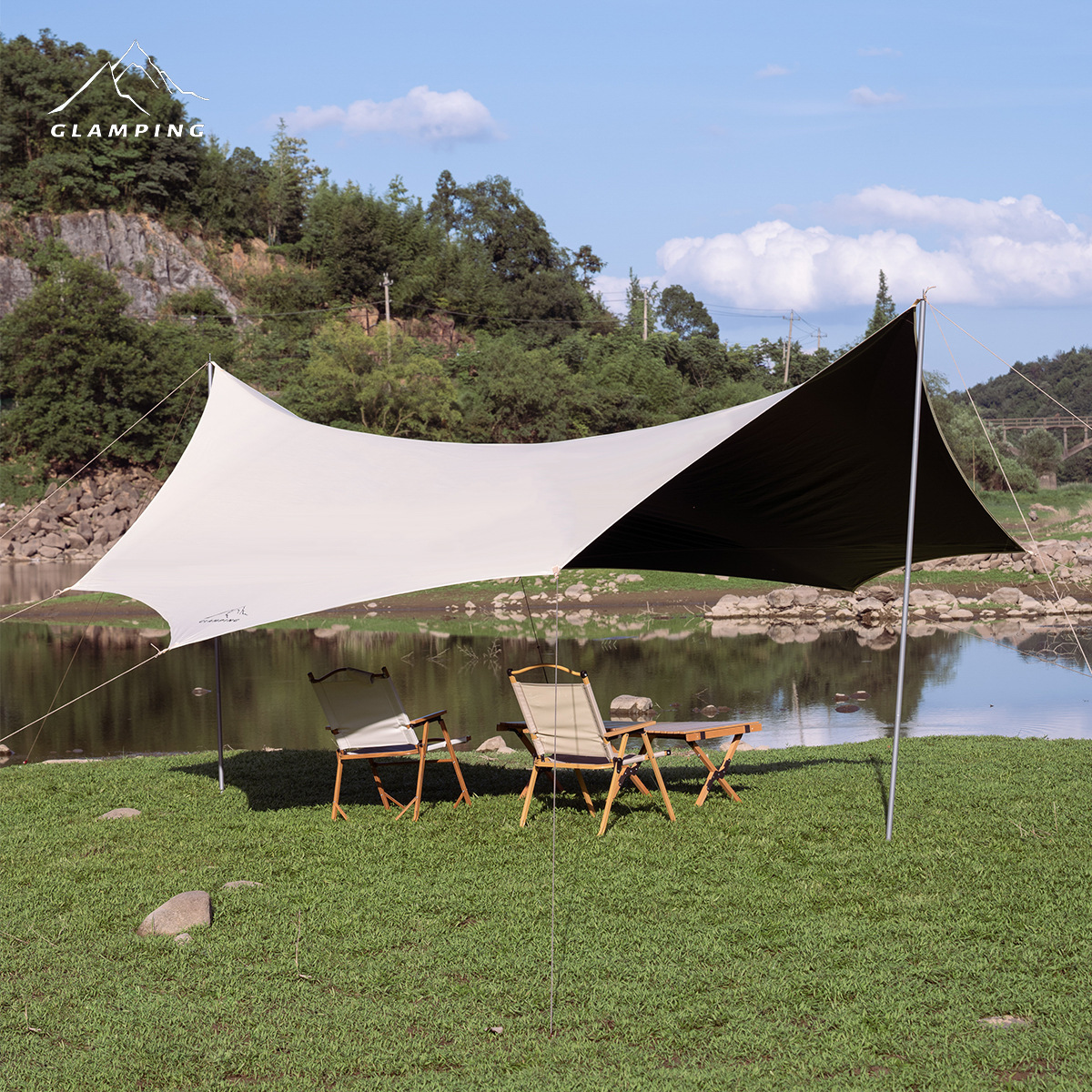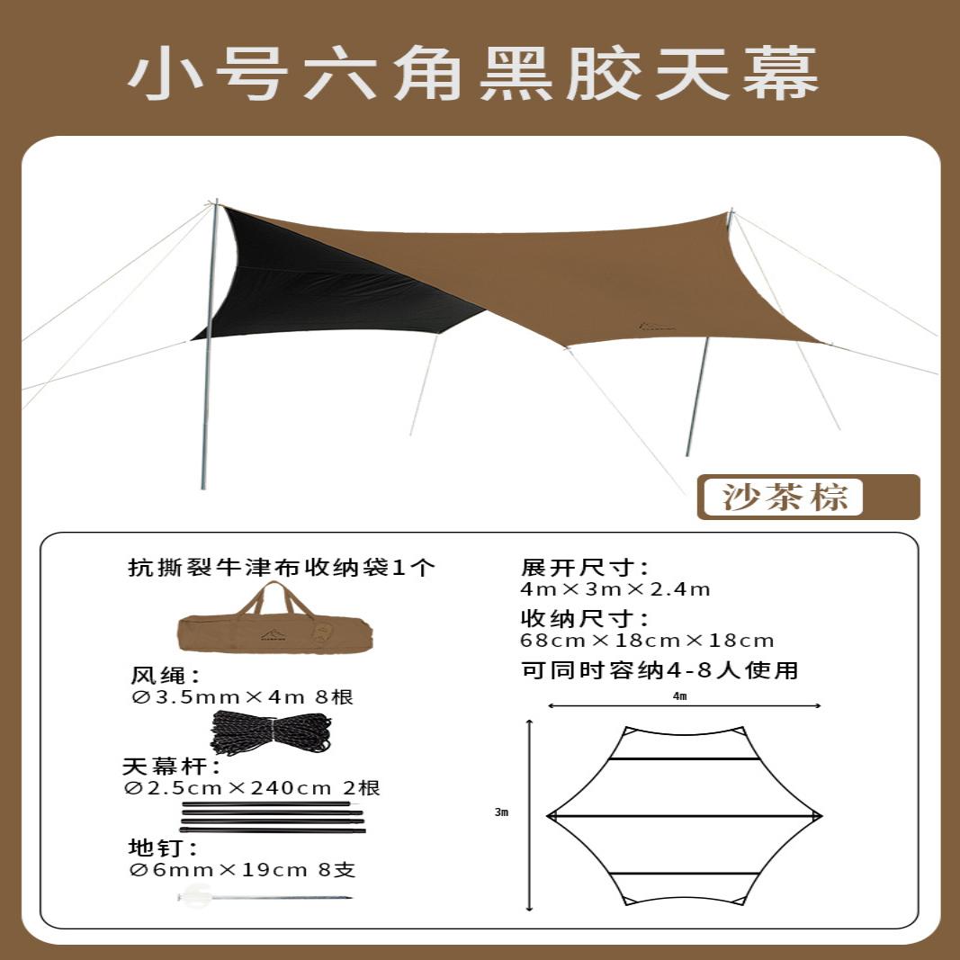 户外野炊多功能六角天幕防水防晒野营帐篷沙滩遮阳布地布防潮垫