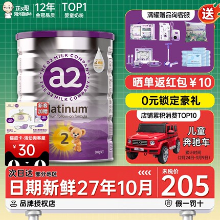 澳洲a2奶粉二段2段紫白金版婴幼儿宝宝牛奶粉900g有三段3段四段