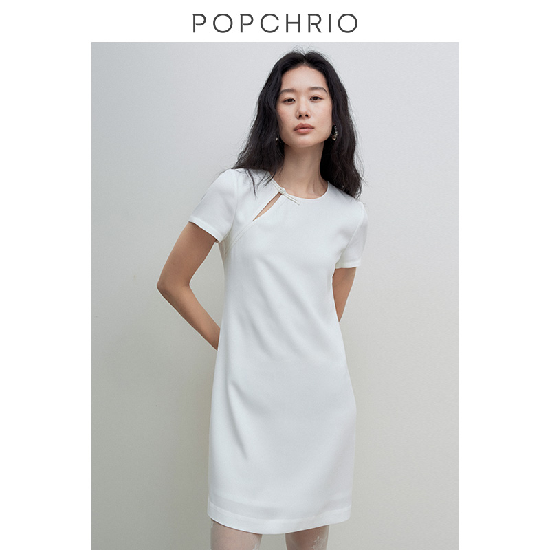 POPCHRIO欧可芮◆醋酸新中式盘扣短款旗袍连衣裙国风短袖裙子女夏