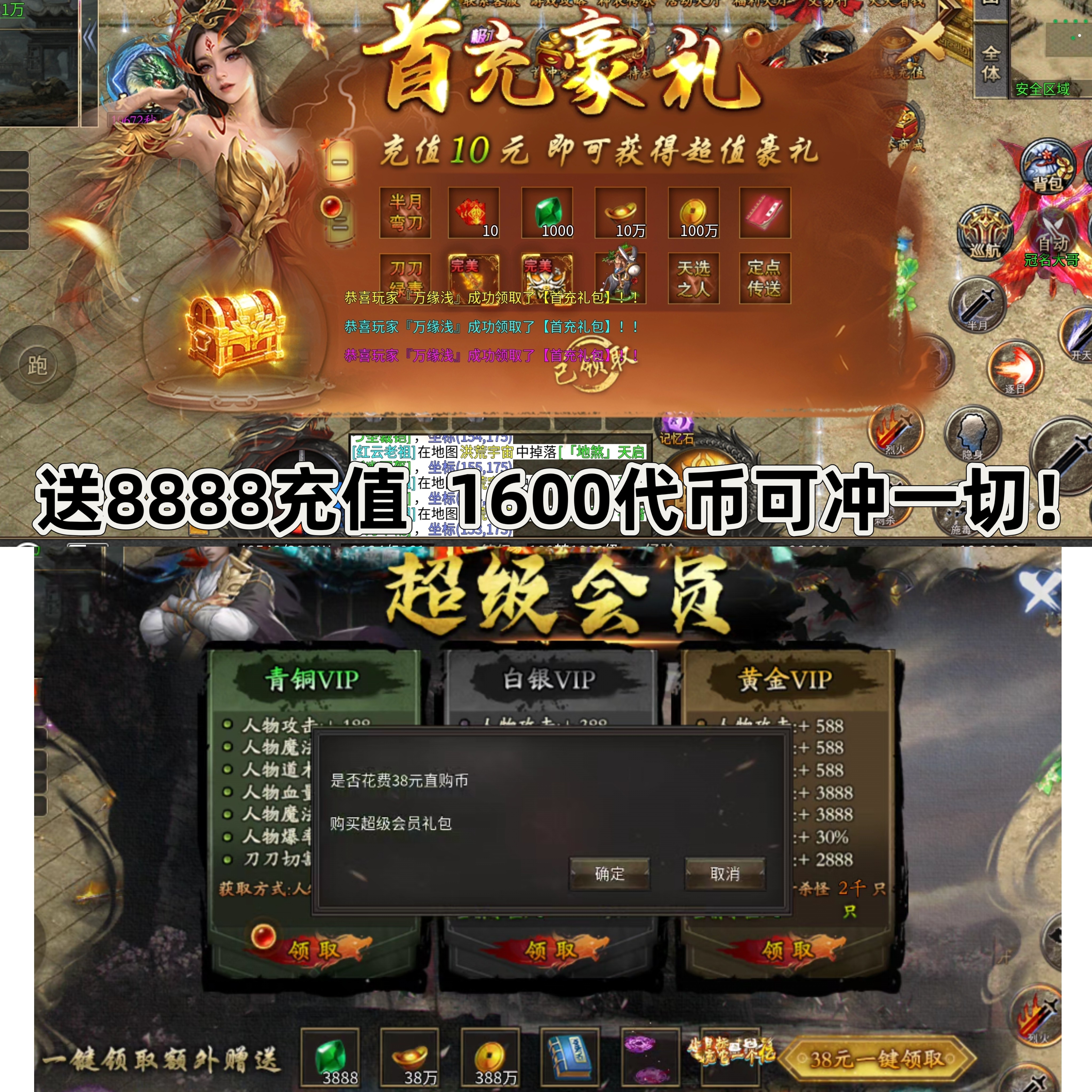 沉默专属传奇1600代币996神器单职业手游福利号无限GM后台非单机