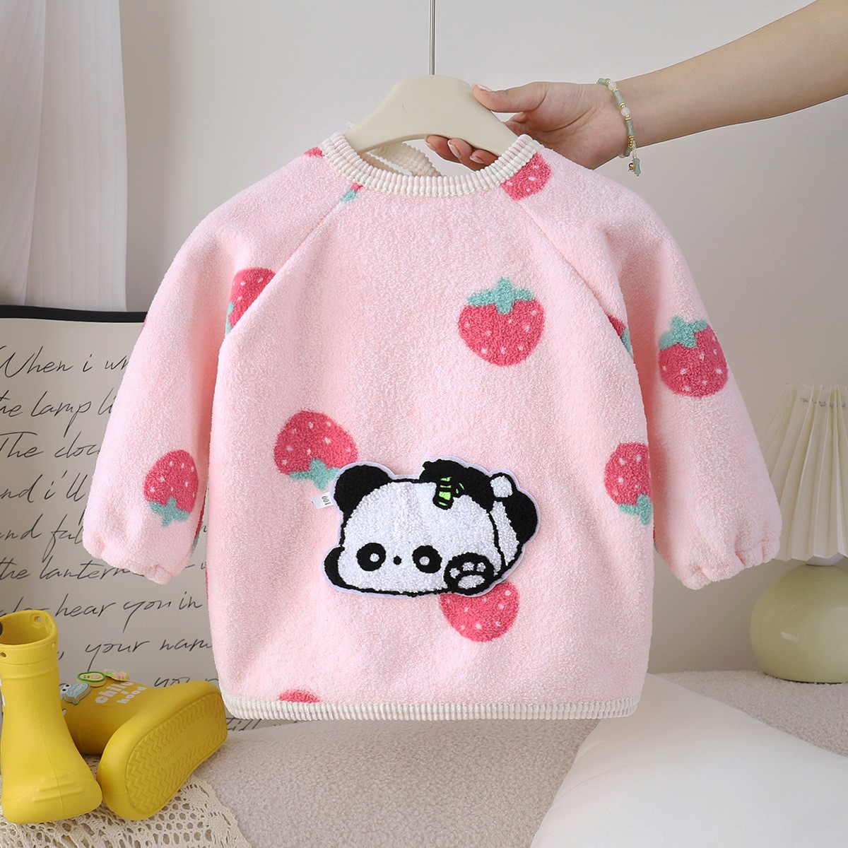 新秋冬双面绒保暖婴儿护衣防脏衣儿童小孩罩衣宝宝女罩棉袄反穿衣