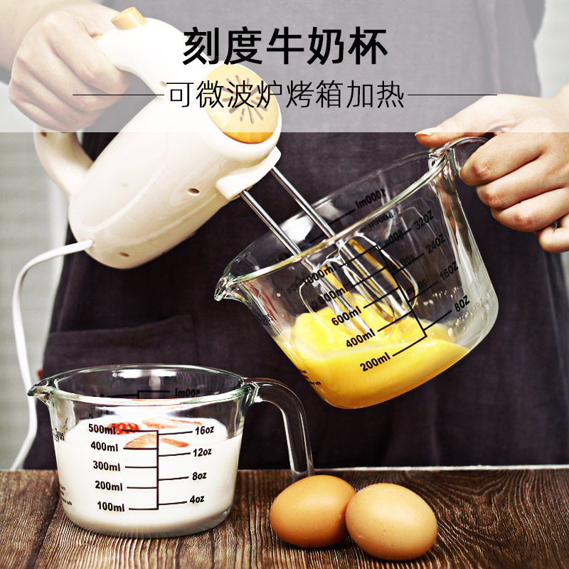 创得牛奶杯耐热玻璃刻度杯子微波炉加热奶杯量杯家用儿童早餐杯