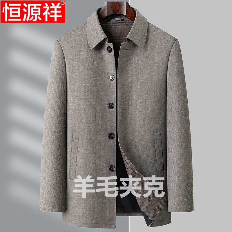 恒源祥翻领羊毛夹克春秋新款中老年高端扣子外套男商务休闲爸爸装