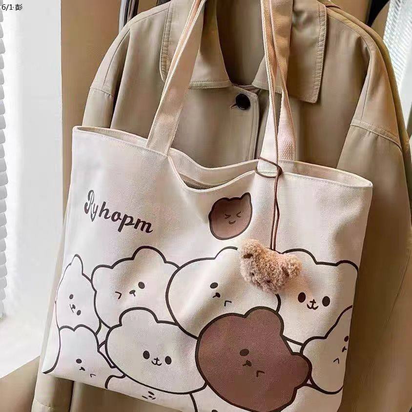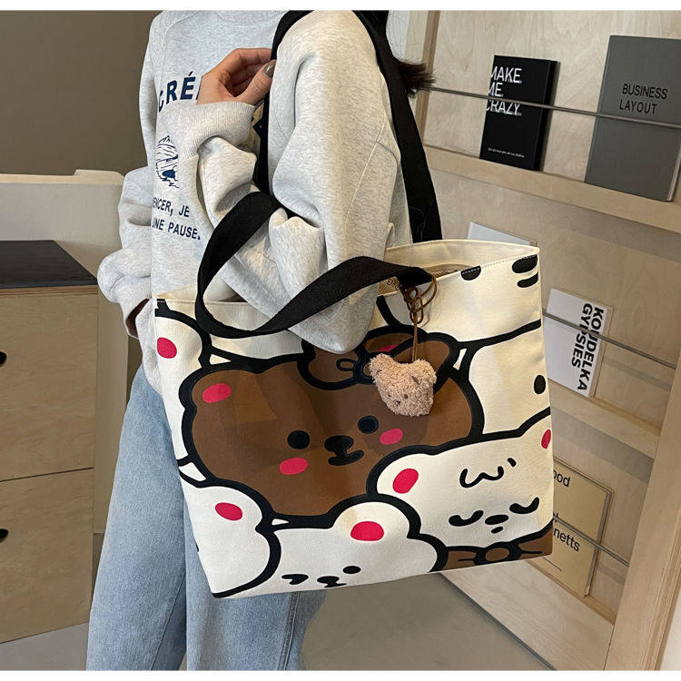 日系卡通ins单肩大容量学生布袋托特百搭学生上课通勤帆布手提袋
