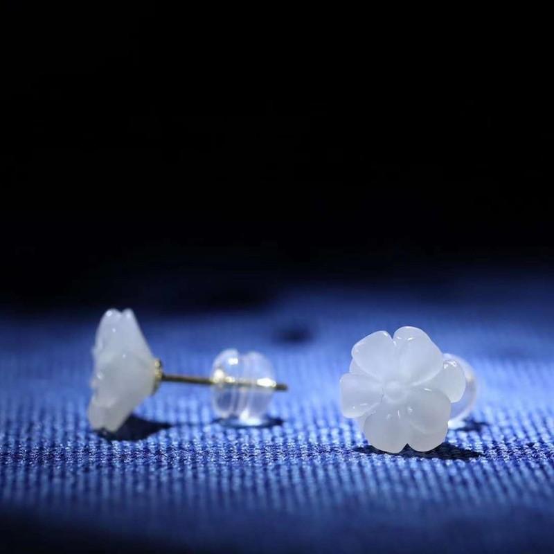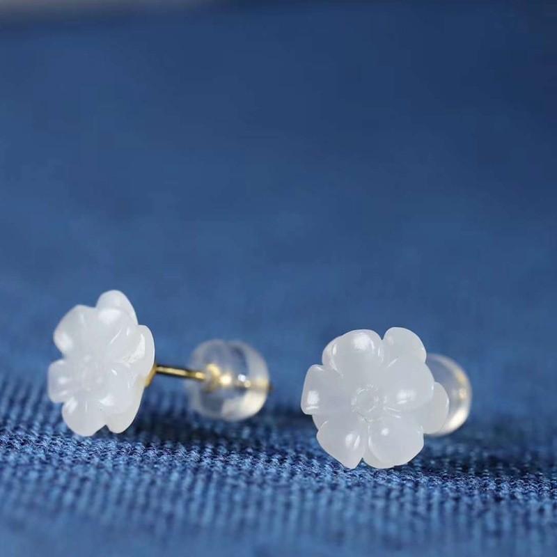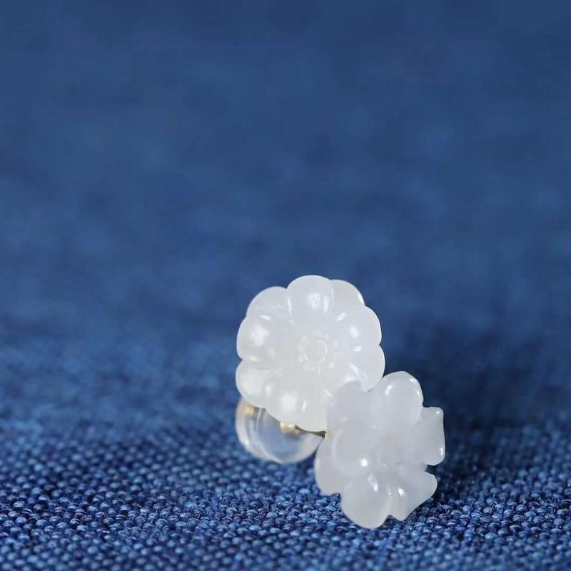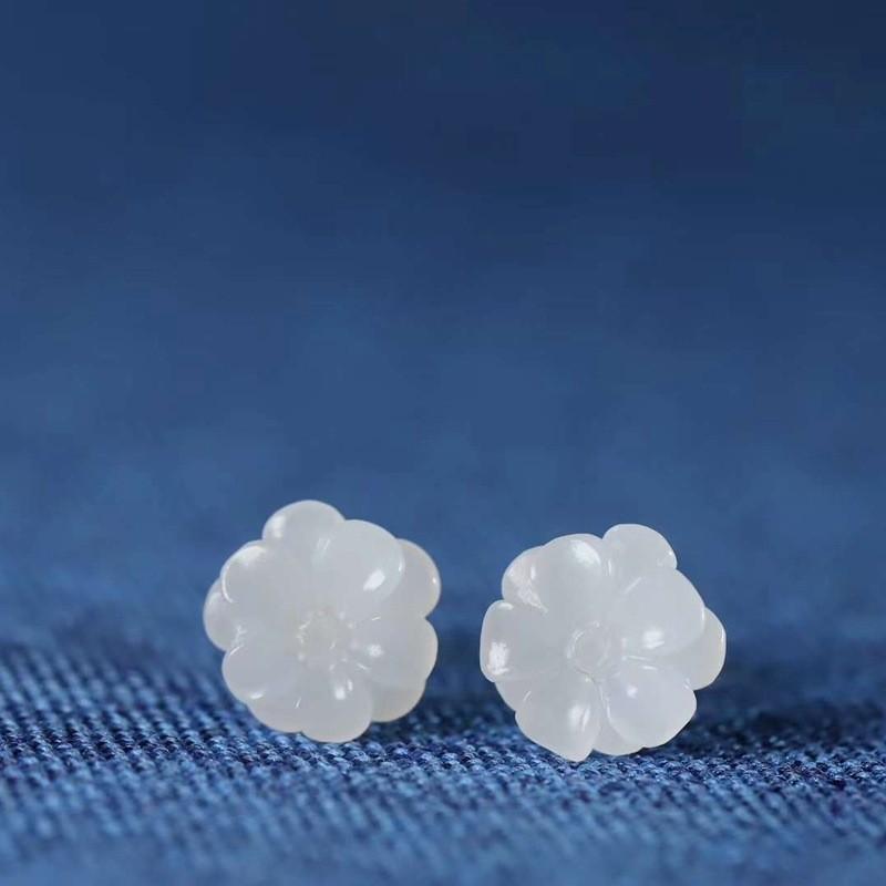 和田玉供应链天然新疆和田玉青海料羊脂级白玉小花玉石耳钉工艺品