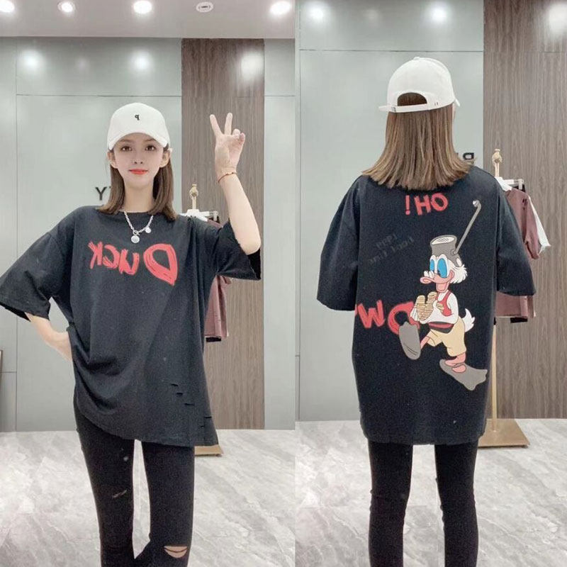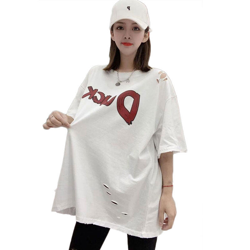 萱魅莎短袖韩版常规款破洞字母