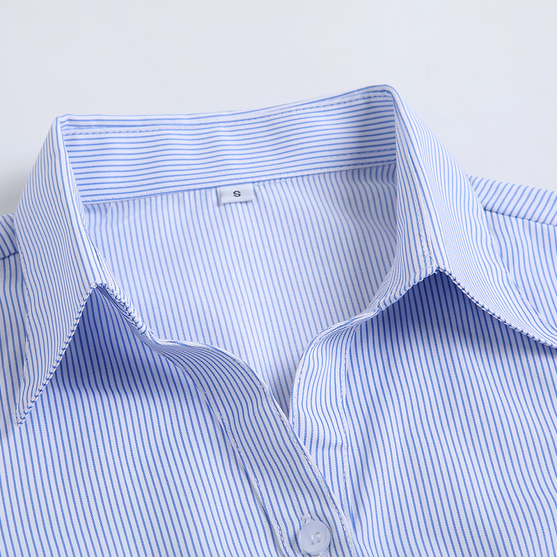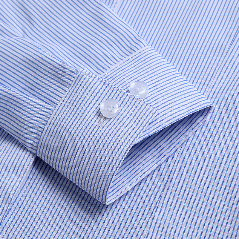 加绒白竖纹衬衫女长袖秋冬加厚保暖工作服职业工装蓝白条纹衬衣寸