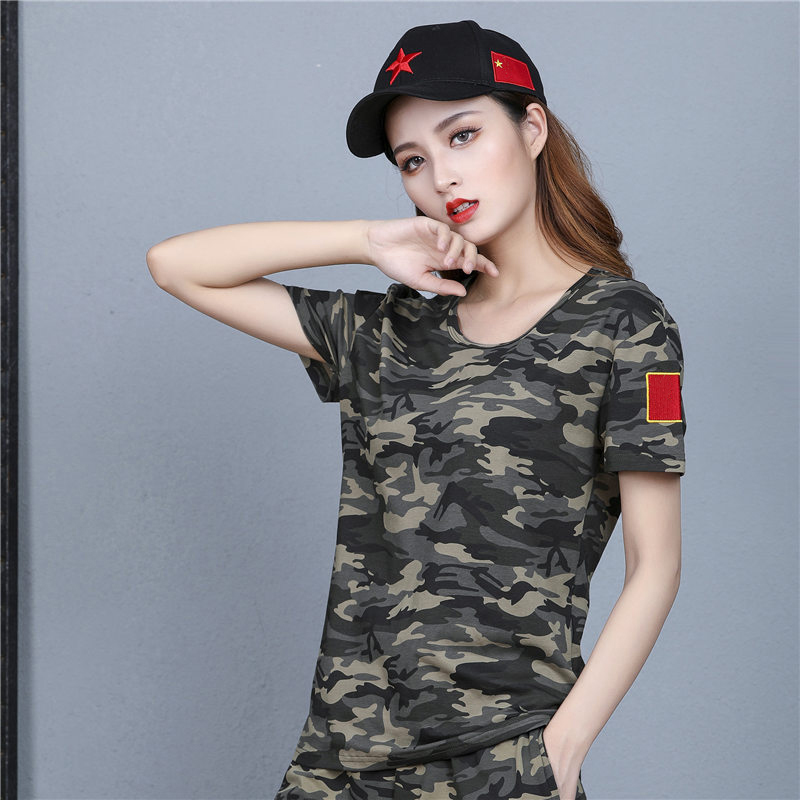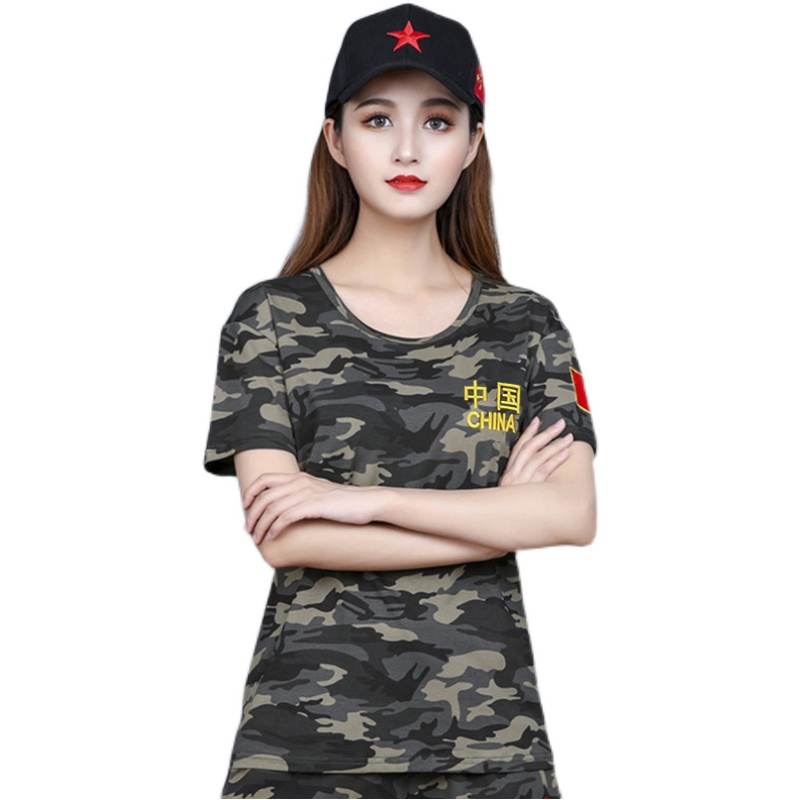 迷彩短袖t恤宽松女款夏季纯棉休闲显瘦剌绣中国地图半袖迷彩服
