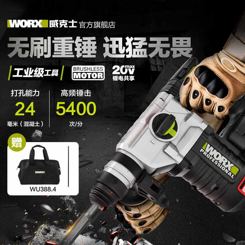 威克士方柄WU388F电锤锂电无刷工业变速冲击钻锤钻手持式电捶电镐