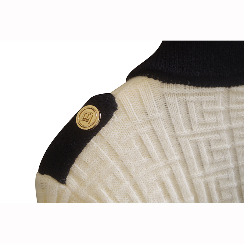 针织单排扣翻领开衫拼色外套肩章