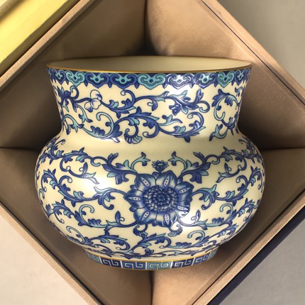 正品汝瓷650ml汝窑建水功夫茶具水盂桌面茶渣缸茶水桶青花茶洗