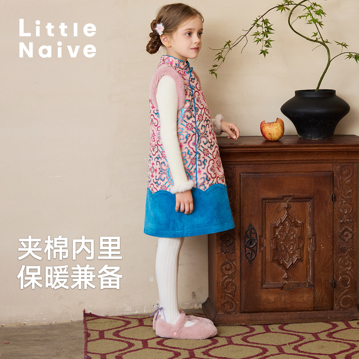 LittleNaive女童时髦新中式拜年服连衣裙冬新款金丝雪尼尔背心裙