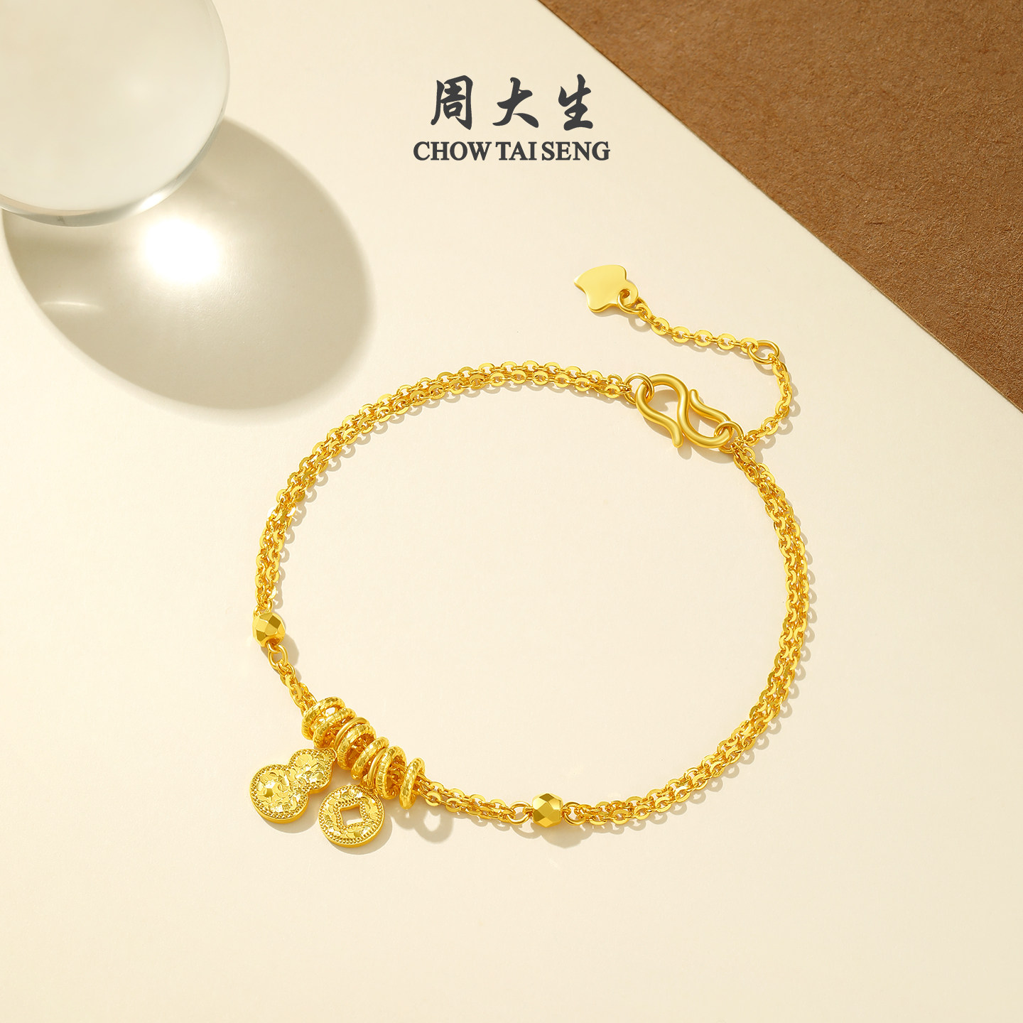 周大生黄金手链女葫芦钱币福禄足金爆闪碎碎冰O字链生日礼物女生