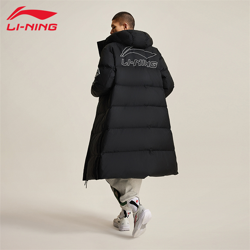 李宁CBA长款羽绒服男冬新款御雨防风连帽保暖外套休闲运动上衣男