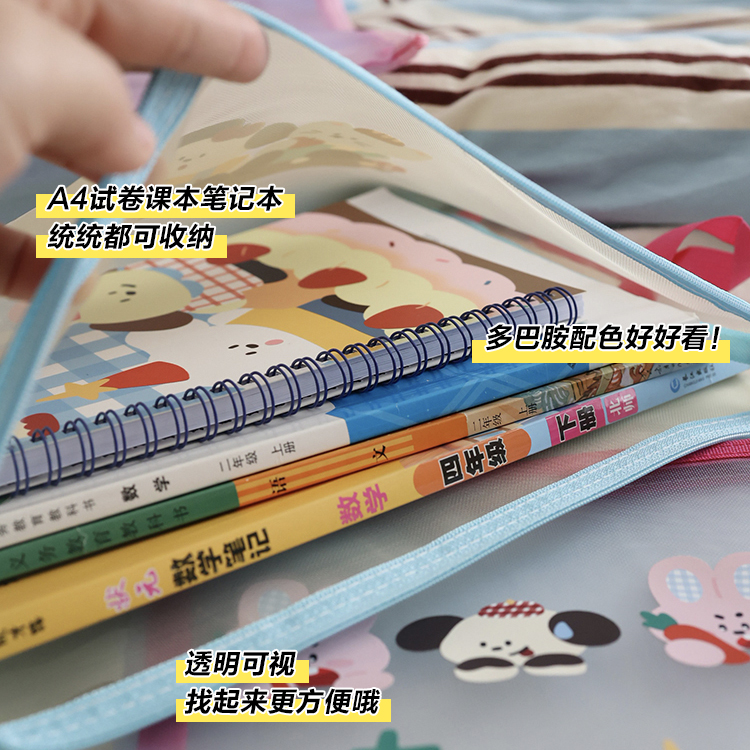 透明文件袋a4试卷文件袋拉链式手提袋小学生拎书收纳袋子书包