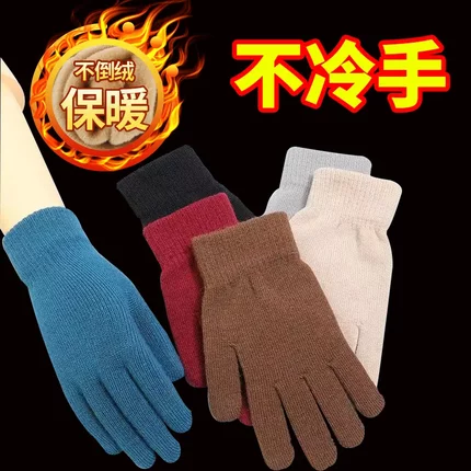 纯色针织手套男女士秋冬季保暖加绒弹力毛线分指学生骑行防寒手套