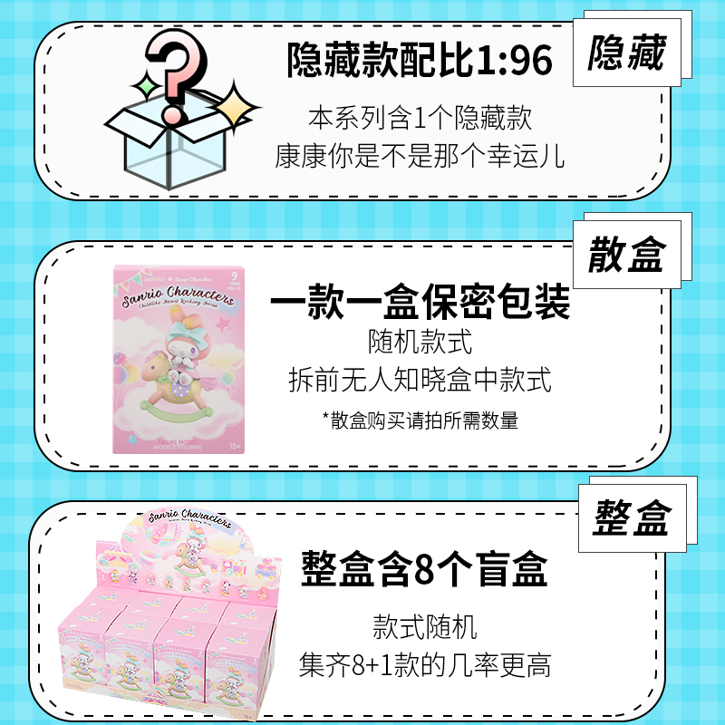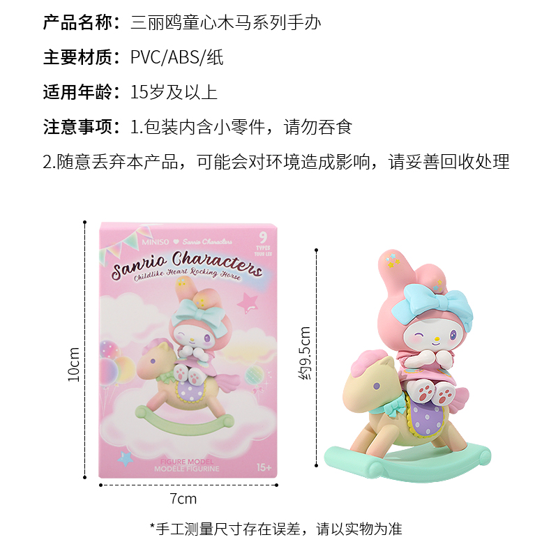 Miniso名创优品三丽鸥童心木马盲盒手办卡通可爱玉桂狗库洛米摆件