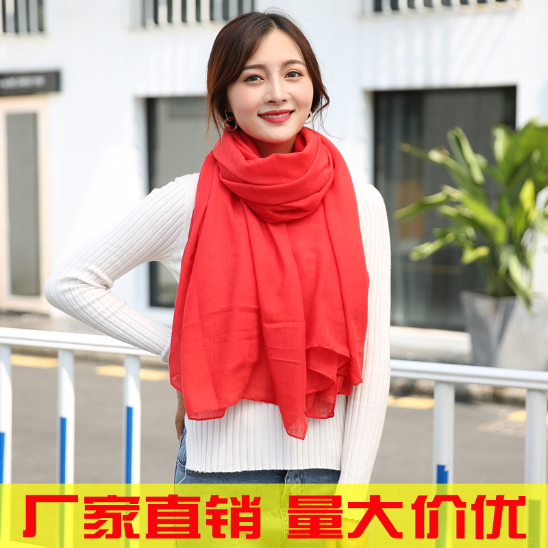 加宽纯色棉麻围巾女秋冬季保暖披肩春夏天防晒超大丝巾超宽沙滩巾