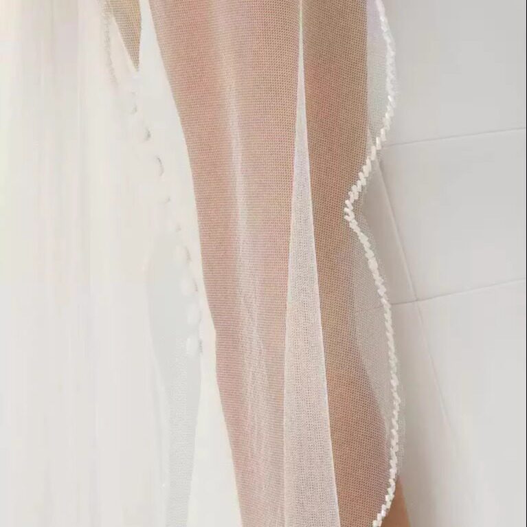 高级感精致新娘结婚波浪边高透明手工缝珠软纱拖尾写真头纱