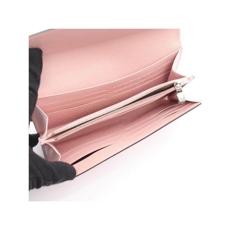 中古LV路易威登女A级95新Portefeuille Sarah牛皮长钱包粉色
