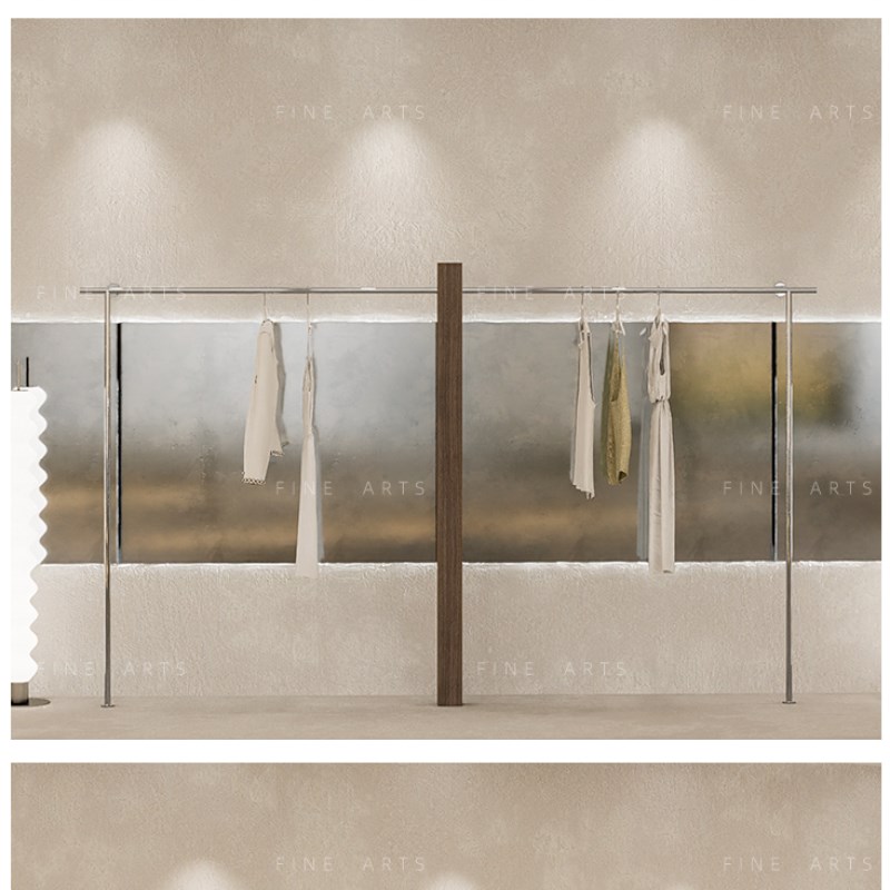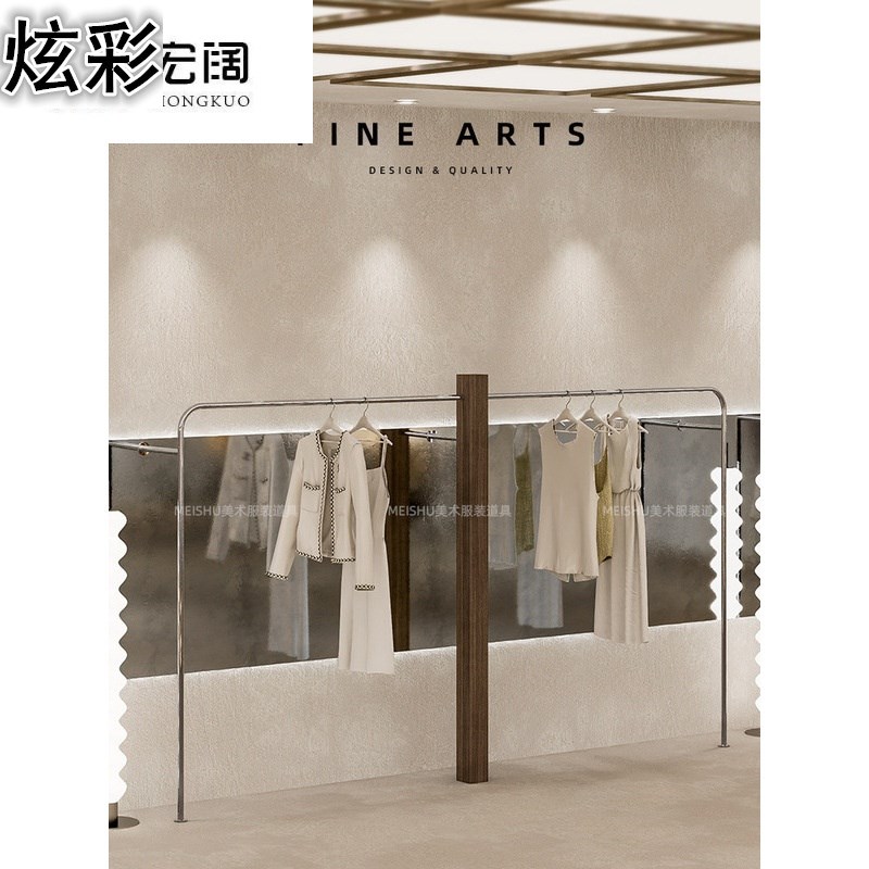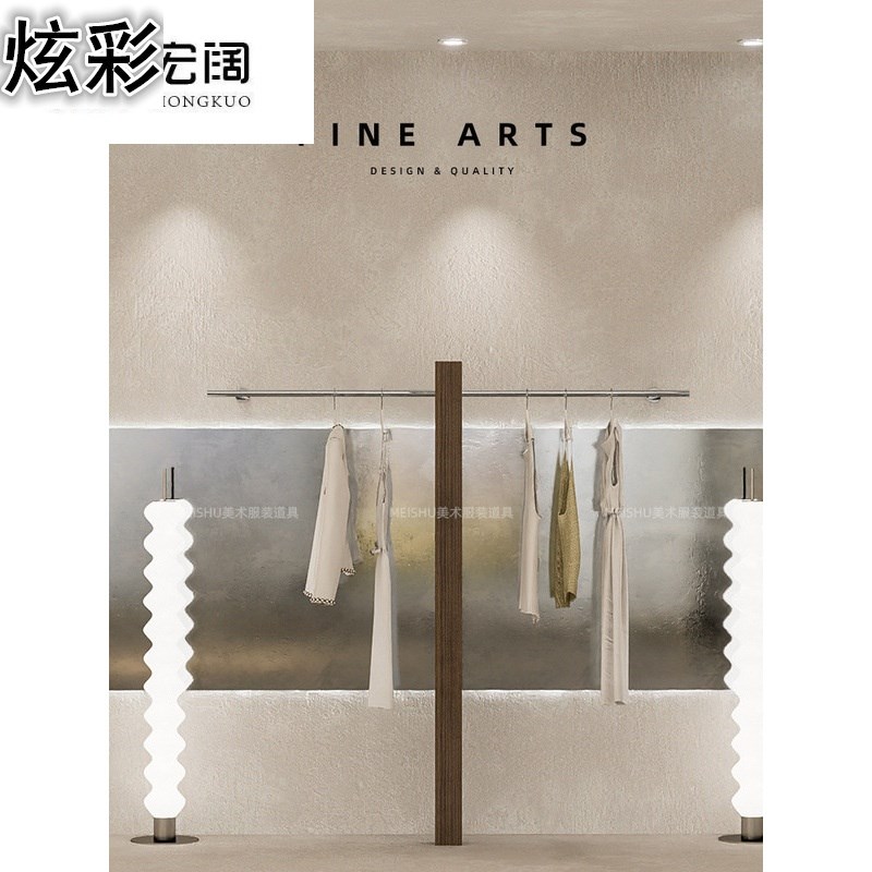 服装店展示架上墙童装店挂衣杆墙壁胡桃色实木落地衣架女装店货架