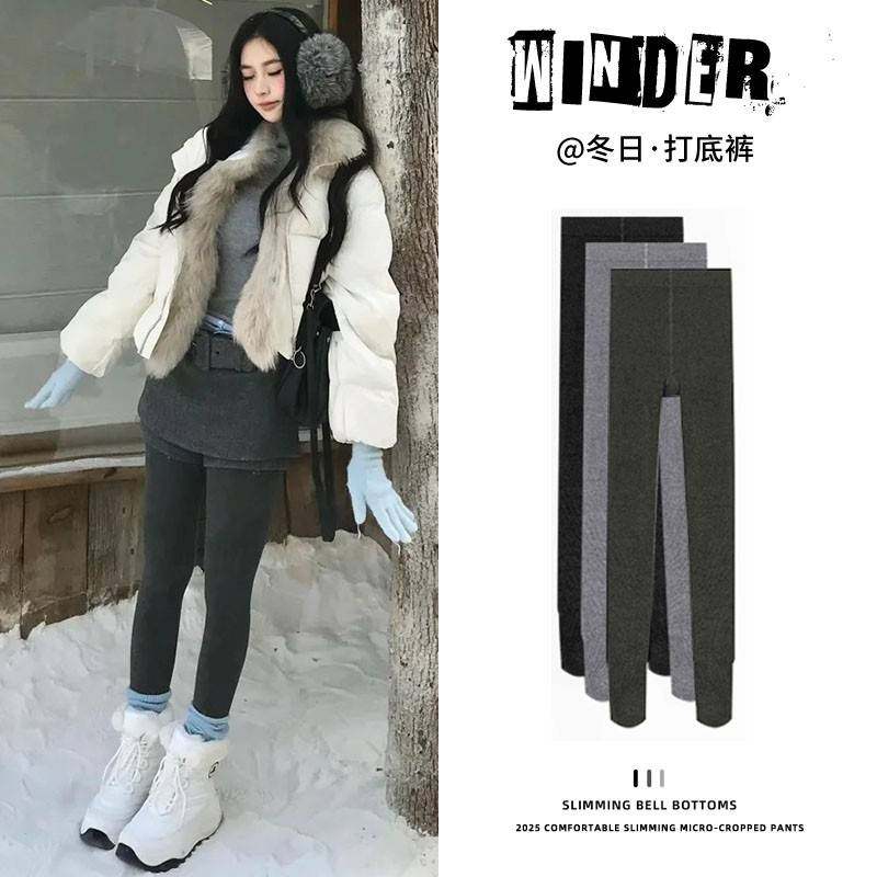 深灰色打底裤女冬季2025新款加绒加厚保暖裤小个子高腰踩脚裤外穿