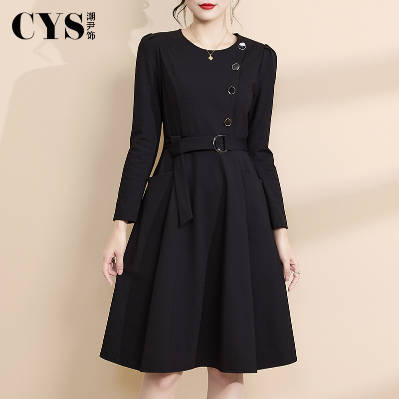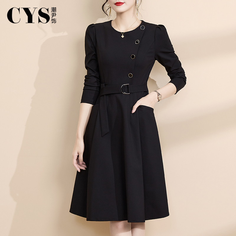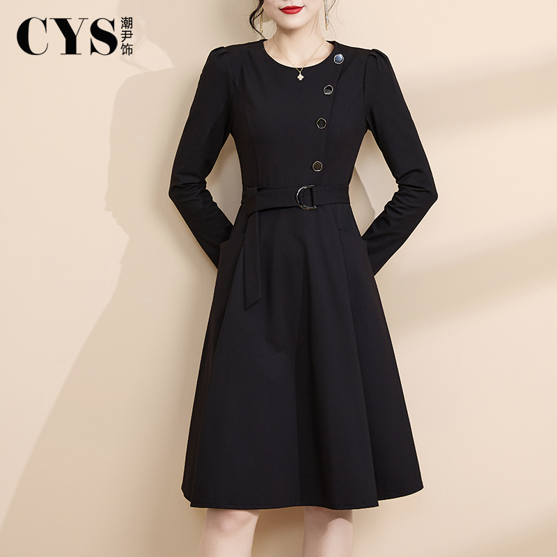 2025秋季新款赫本风长袖连衣裙高级感正式场合收腰显瘦气质小黑裙