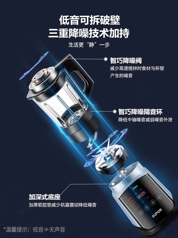 苏泊尔可拆洗破壁机2025新款家用豆浆机低音多功能婴儿辅食料理机