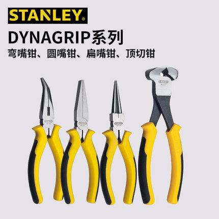 史丹利DYNAGRIP系列双色柄弯嘴钳扁嘴钳圆口钳顶切钳6寸8寸