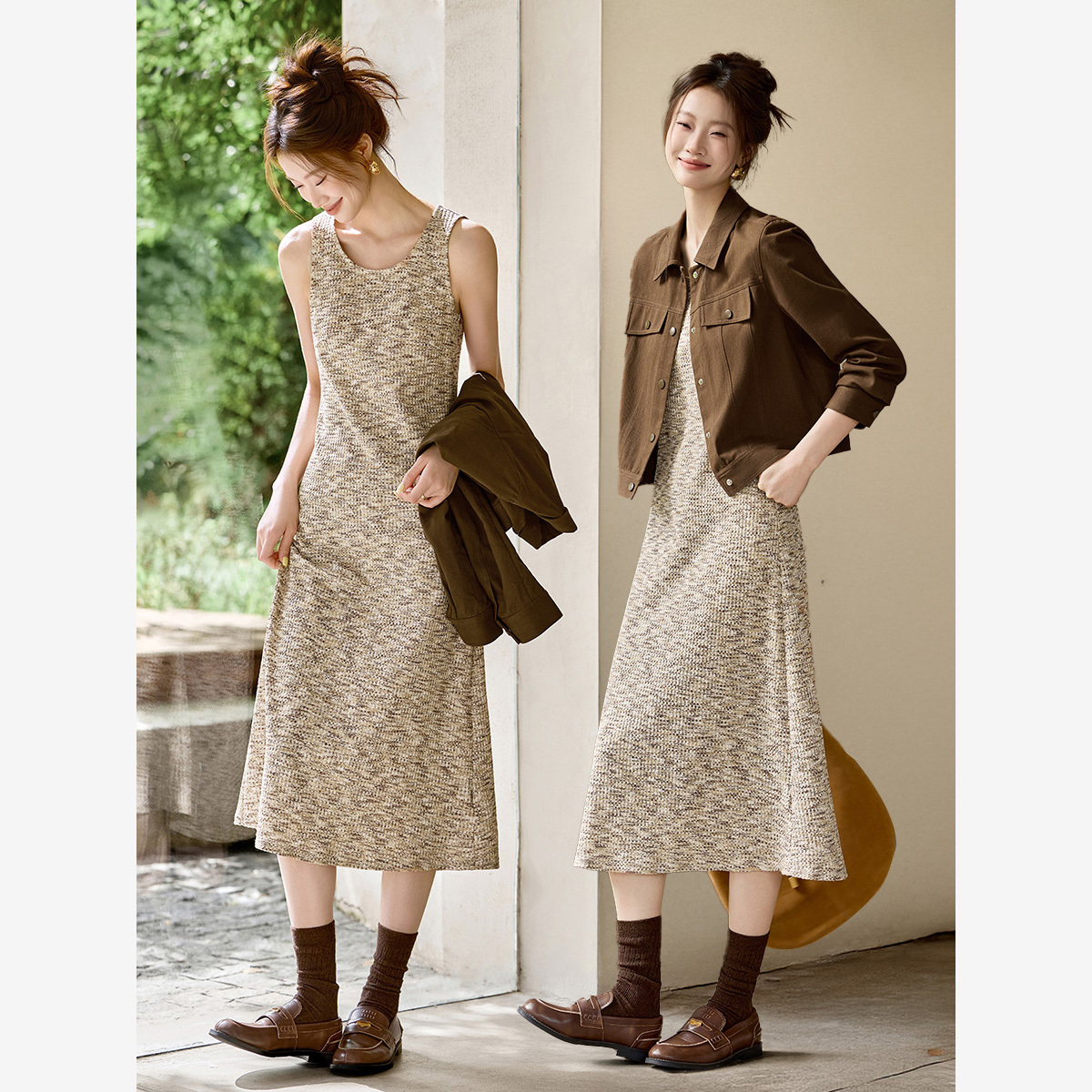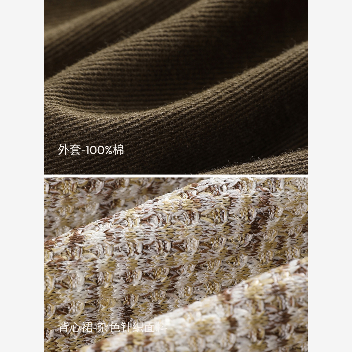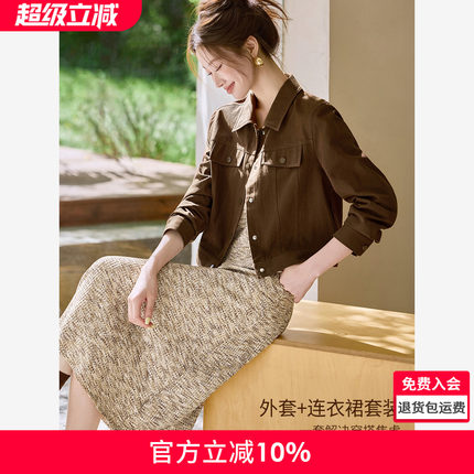 沫晗依美纯棉外套针织连衣裙两件套2025秋季街头感美拉德休闲套装