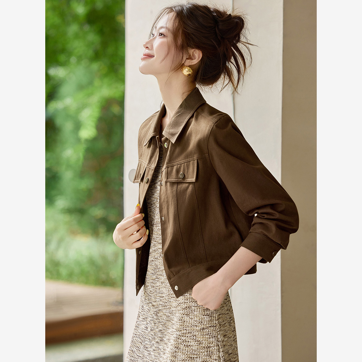 沫晗依美街头感美拉德休闲套装