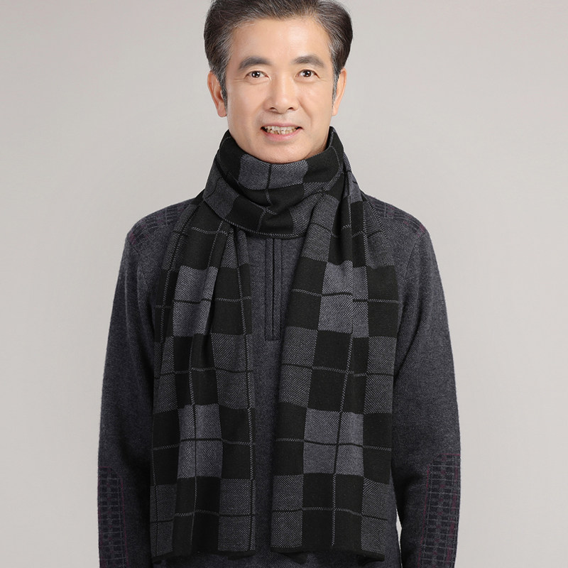 冬季中年爸爸爷爷围脖长辈中老年人老人老头冬天加厚保暖男士围巾