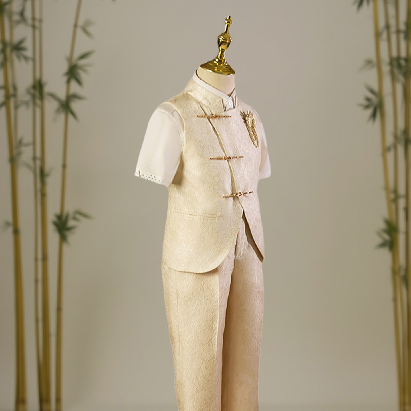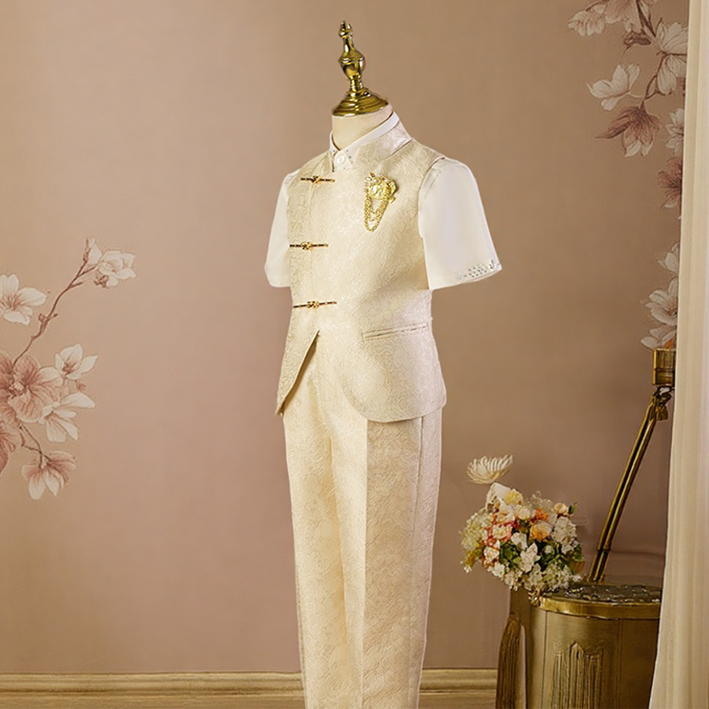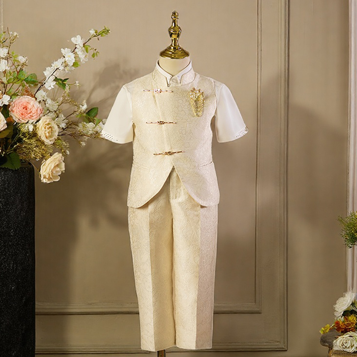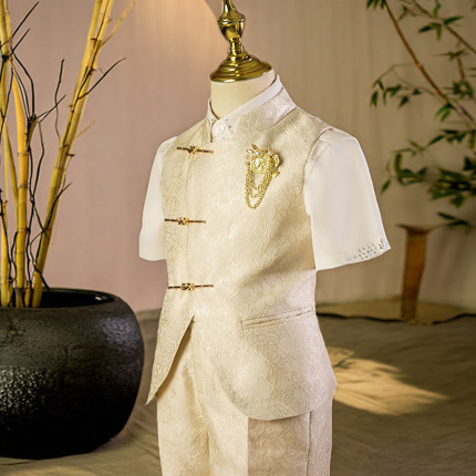 男童西装套装中山装高端儿童西服马甲走秀潮服花童礼服主持演出服