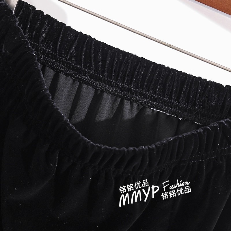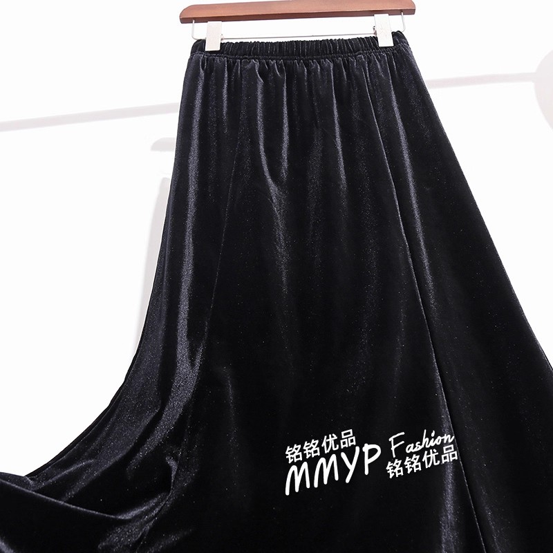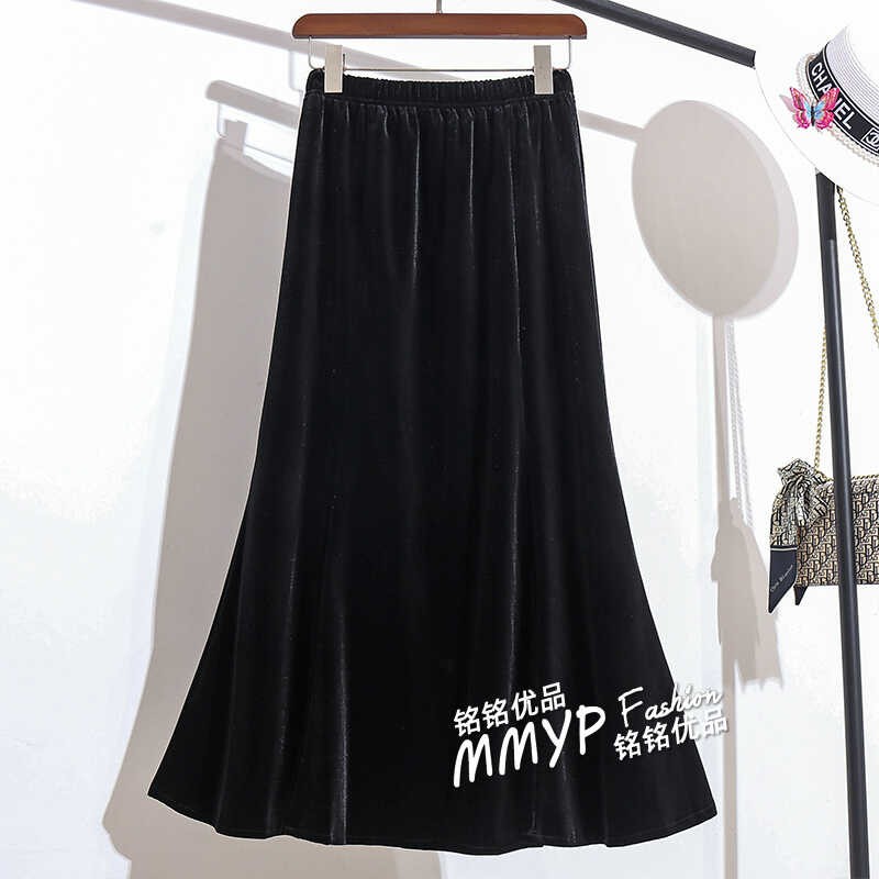 黑色松紧腰鱼尾丝绒半身裙女秋冬复古金丝绒裙子a字裙包臀裙长裙