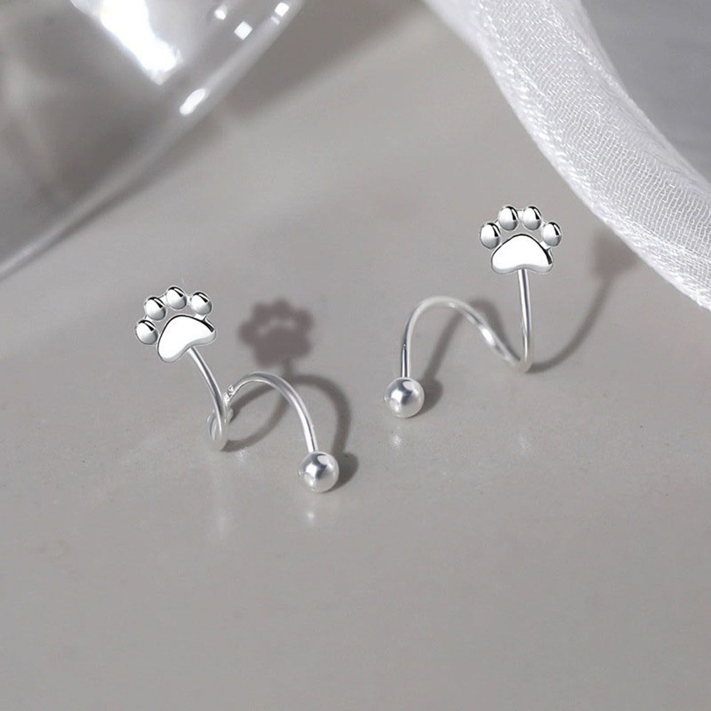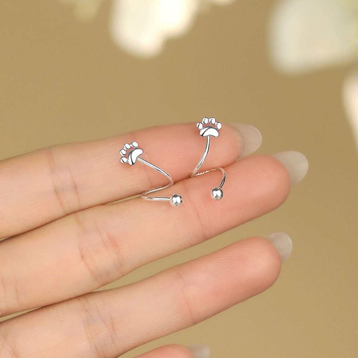 925银针小猫爪螺旋耳环可爱小众设计螺丝拧扣耳钉轻奢高级感耳饰