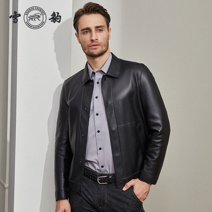 男士真皮皮衣雪豹短款翻领
