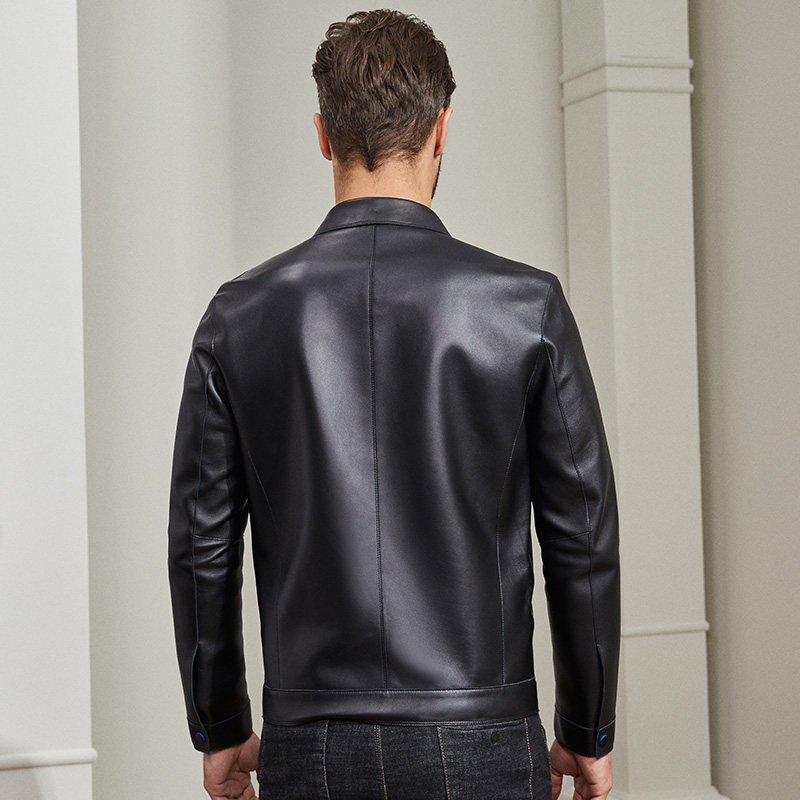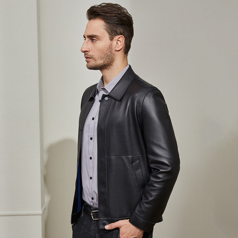 雪豹真皮皮衣男头层绵羊皮商务轻奢时尚体制内翻领短行政夹克外套