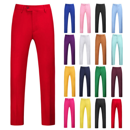 男士修身时尚大码西裤纯色彩色黄色休闲裤子男大红色本命年西装裤