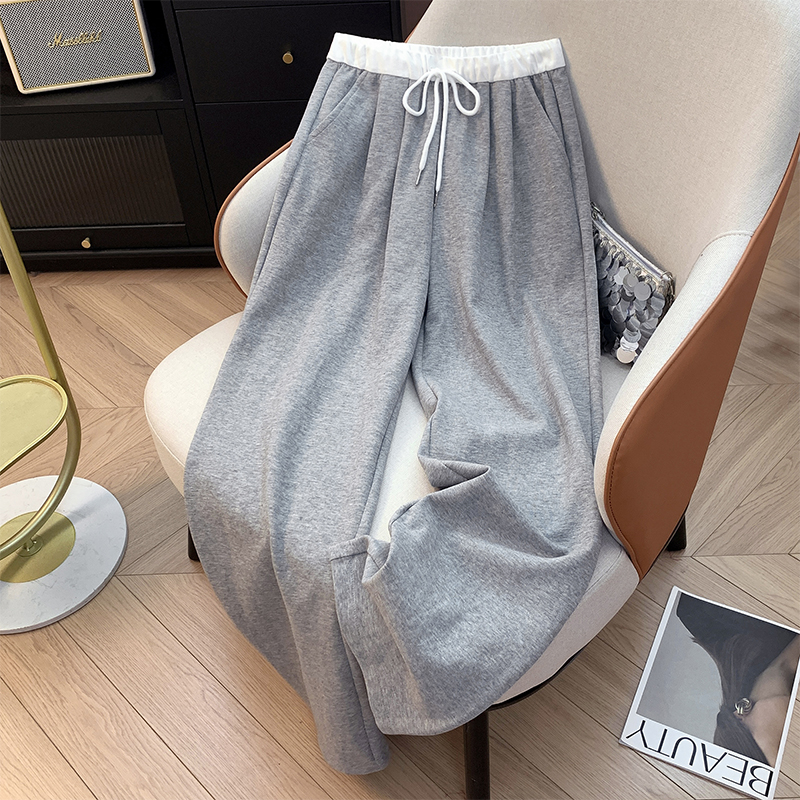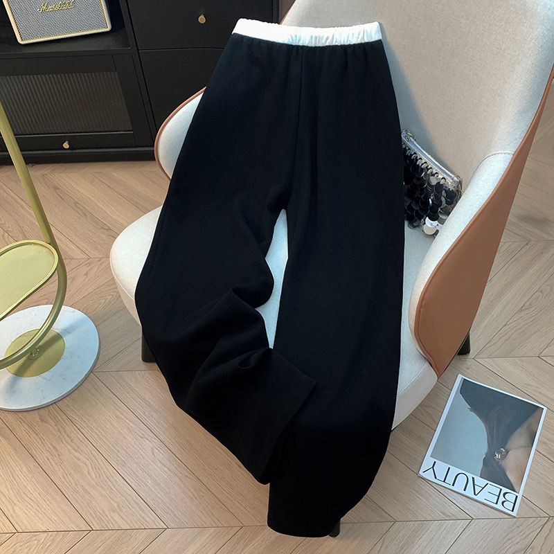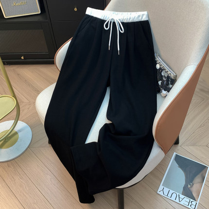 实拍黑色运动裤女2025新款秋季高腰直筒宽松休闲卫裤加长阔腿裤子