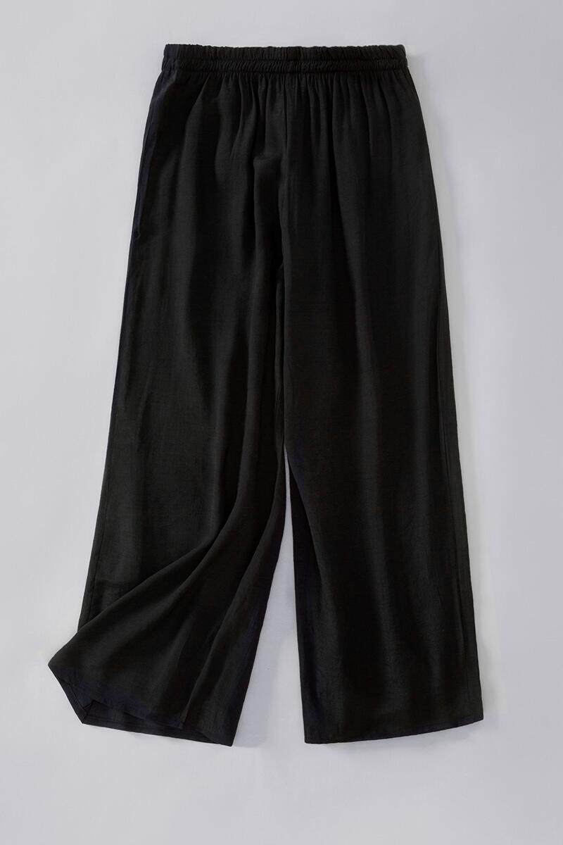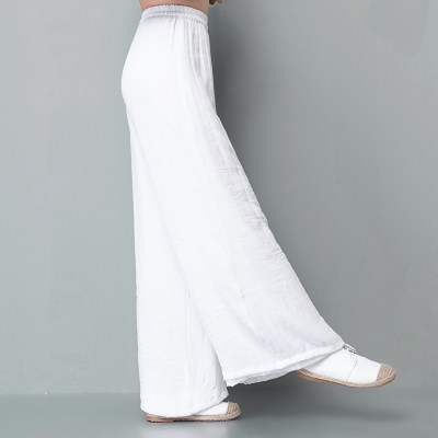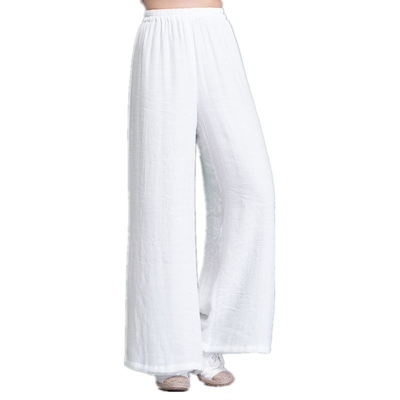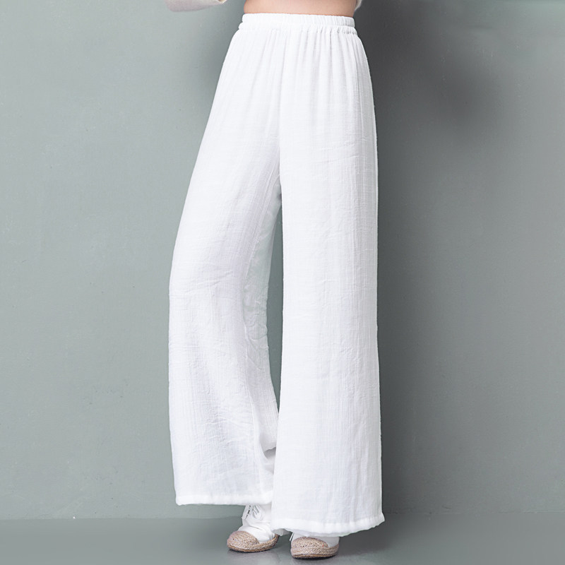 复古民族风女装唐装棉麻阔腿裤女裤子宽松直筒白色亚麻休闲长裤夏