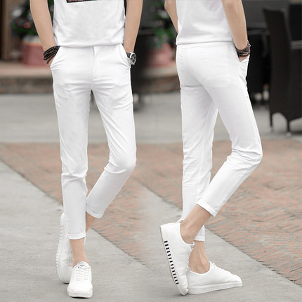白色九分裤男修身小脚青少年9分